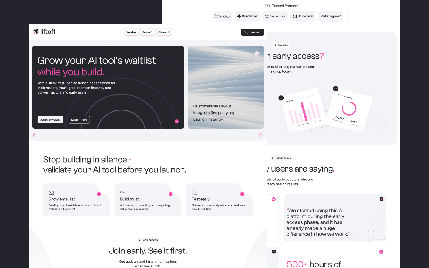 A modern Webflow one-page template designed to help AI startups launch fast. Collect waitlist signups, showcase features, and validate your product - all on a sleek, high-converting landing page. Perfect for AI tools, SaaS, and early access launches.