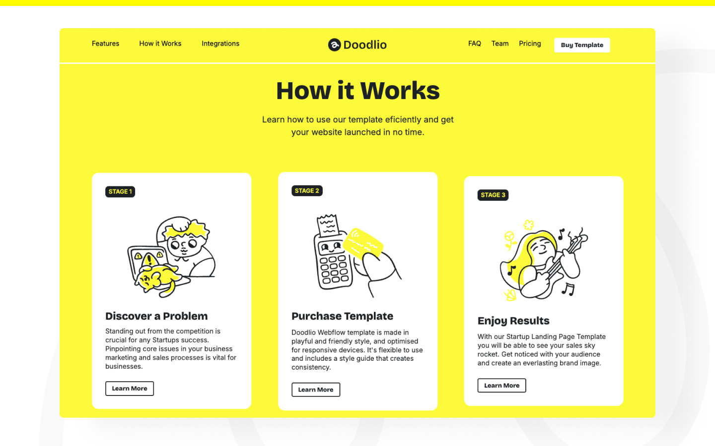 Doodlio is a vibrant Webflow site with a playful, engaging, and modern design. Use it to market your business, showcase your brand, and connect with your customers in a quirky, fun, and unique way.