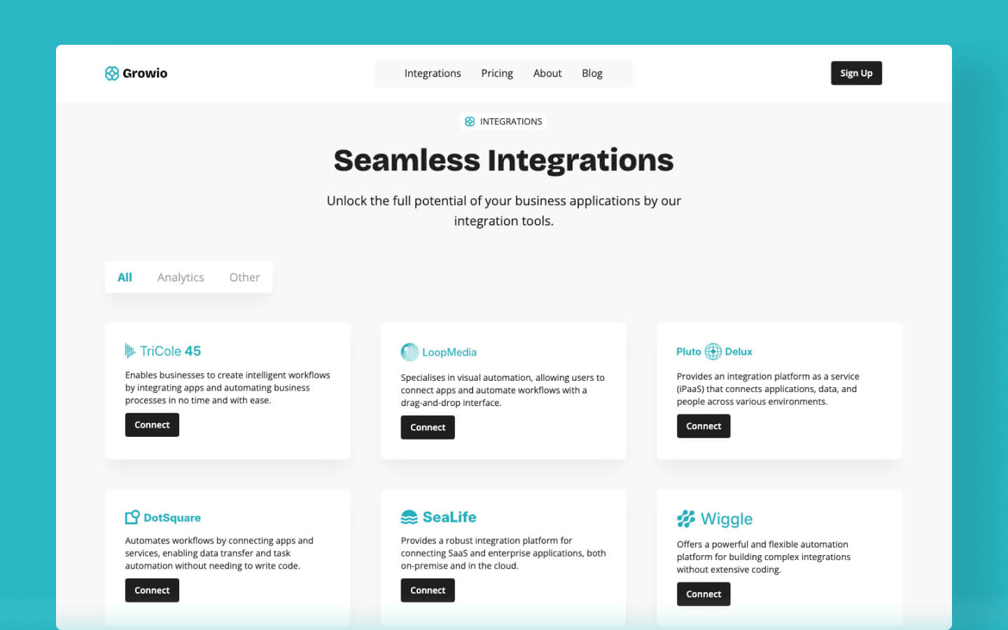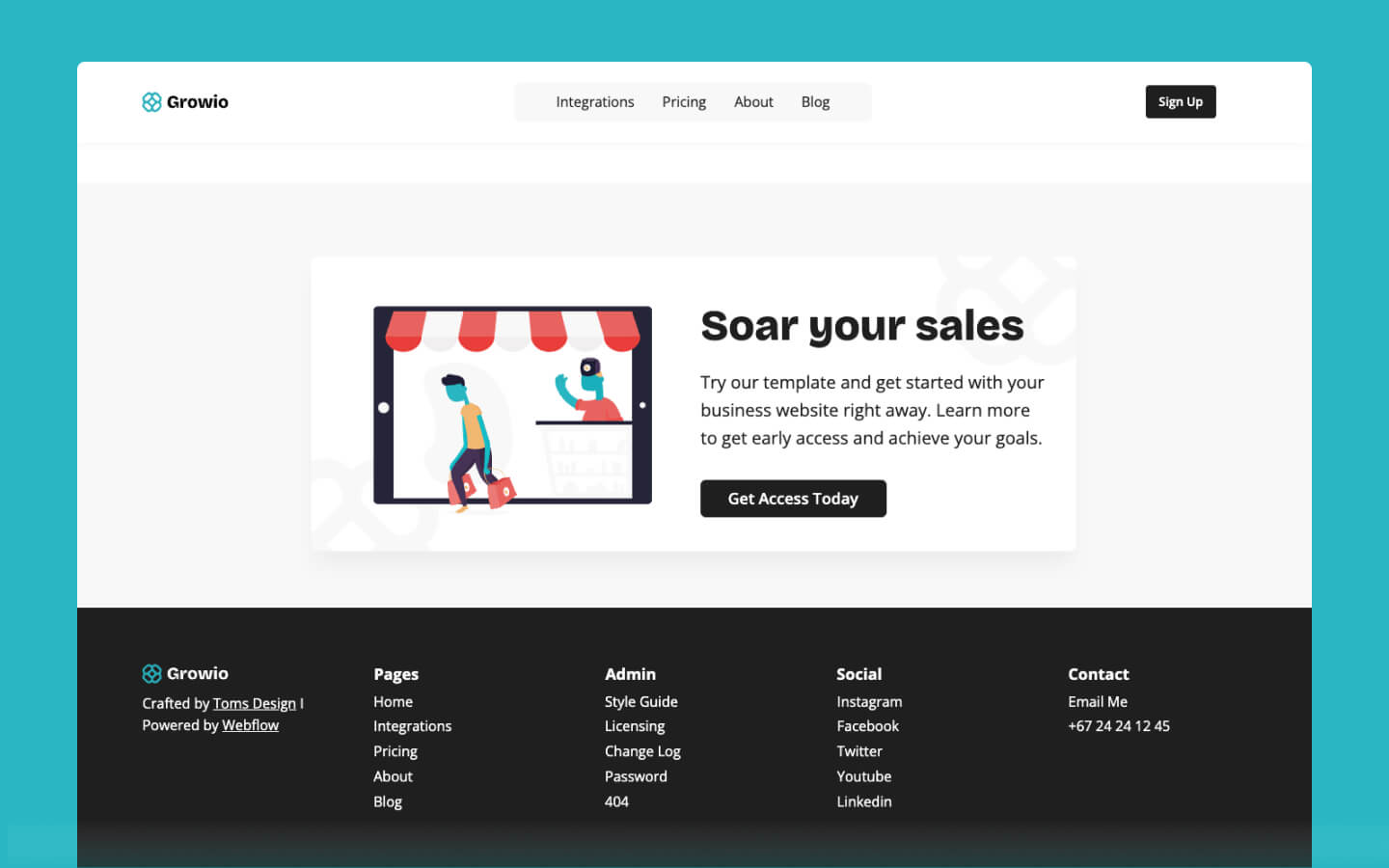 Featuring a responsive design, customisable sections, and seamless integration with marketing tools, the Growio Webflow template is perfect for showcasing your innovative solutions and driving growth.
