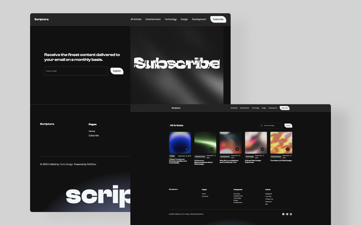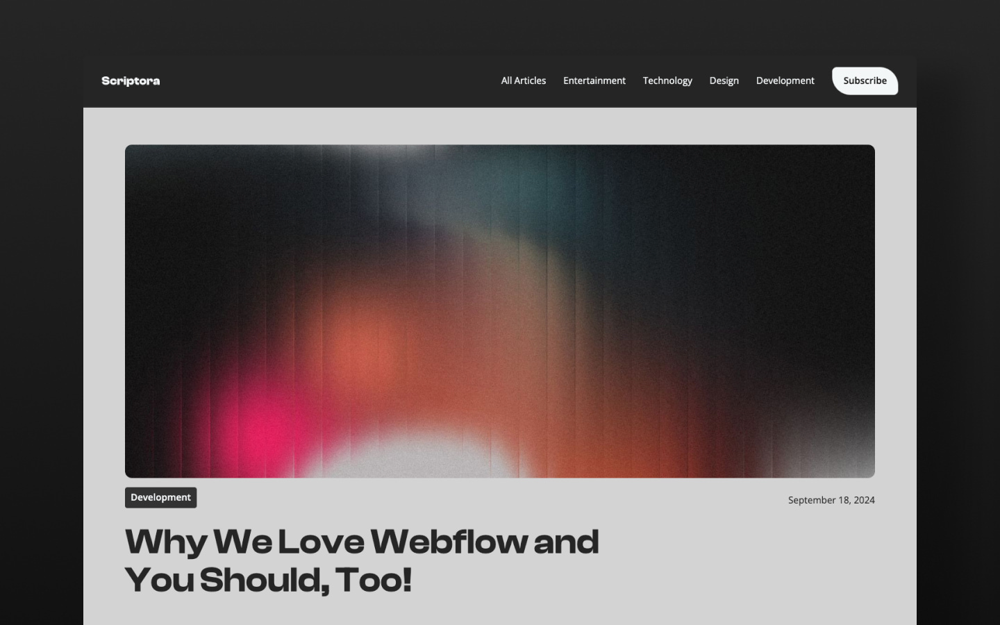 Scriptora is a modern and bold blog template ready for use as a startup, tech, business, personal news site or online journal. Its minimal and striking design, flexible grid system, and easy customization will serve your content and business needs.